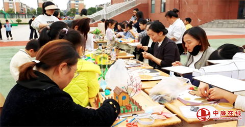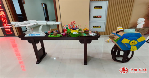 各班级亲子手工作品琳琅满目。废旧纸盒摇身一变制成了电视机,废旧材料经过加工变成了小飞机、机器人、小钟表……他们的制造设计精美、创意十足、新颖别致,有的还兼顾了美观、实用、新颖等多重特点。