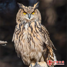 雕鸮(diāo xiāo)全长55—71厘米,体羽大部分为黄褐色;喉白色;头有耳簇羽;后颈和上背棕色,有黑色羽干纹;颏白色;胸棕色;下腹中央棕白色;覆腿羽和尾下覆羽微杂褐色细横斑;腋羽白色或棕色,具褐色横斑;虹膜金黄色;喙和爪均铅色,端部黑色。雕鸮主要栖息于山地森林、平原、荒野、林缘灌丛、疏林,以及裸露的高山和峭壁等环境中。以农田鼠、野兔及雉类为食,有时也吃蛙、蛇和蜥蜴等。