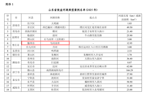 近日,山东省河长制办公室发布了2025年度省级效益河湖典型案例名单,滕州市马河水库成功入选。这不仅是对马河水库治理成效的权威性认可,更是对全市生态文明建设成果的充分肯定。
