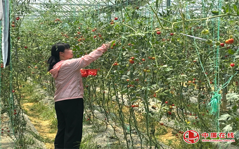 从楼村出发,沿郑五线向东行驶约十分钟,便来到石人乡荷叶村。这里的小番茄陆续进入成熟期,一颗颗果实挂满枝头,红的娇艳、粉的可爱,在阳光下闪烁着诱人的光泽。
