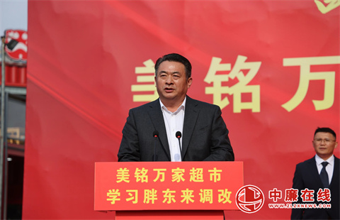 滕州市政府党组成员、副市长徐方坤在仪式上致辞。他指出,美铭万家超市此次全面学习借鉴胖东来先进理念进行调改,是我市商贸企业主动革新、提升品质的重要探索,打响了本土零售向“新质零售”转型的“第一枪”。希望超市坚守“真诚服务、品质至上”的初心,发挥示范引领作用,带动更多企业升级,共同推动滕州消费市场向更高质量、更有温度发展。市政府将持续优化营商环境,支持商贸创新,进一步繁荣市场、惠民利民。
