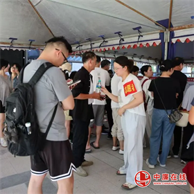 早上8点,分房现场已陆续有居民前来排队等候。为应对高温天气,街道提前在等候区搭建了遮阳棚,并摆放了多台大功率风扇和冰块,为居民送来阵阵清凉。现场还设置了多个饮水点,志愿者不间断地为居民提供饮用水。“天气虽然热,但街道考虑得很周到,不仅有遮阳的地方,还有水和风扇,感觉很贴心。”正在排队的郑阿姨笑着说道。