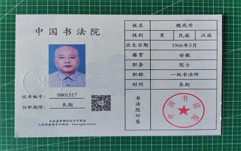 2024年1月,经过考察了解和严格审核后,中国书法院正式将魏兆升先生聘为中国书法院院士并颁发证书。