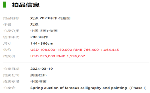 自古以来,书画大多都是富贵人家在收藏,我国人均经济水平急剧升高,因此收藏书画的人也越来越多。书画作品毕竟来源于灵魂,不是可以量化生产的,这也就造成了整个市场供不应求的局面。长时间持续的供不应求,就造成价格的不断上涨。经济发展解释了我国书画卖出天价的原因,同时也决定了未来我国书画市场的走向——还是要涨,并且更加猛烈。刘泓先生的作品《荷趣图》在美国杜邦中国书画专场拍卖会备受关注,多次竞拍,以人民币159.6万落锤成交!