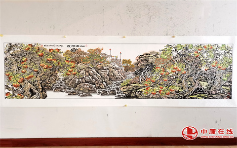 中国国家机关美术家协会副主席薛林兴在细致观摩了孙老新创作的8幅沂蒙山水画给予了高度评价:孙老画作让人看着舒服,有震撼力,榴干之间在互相咬合、盘着、拧着劲、反时针。山、石、树、干这些元素在一个画面上很舒服,既对抗又统一。他不是求的墨韵,求得是线与线的交织的冲撞、扭转。他的线条很有力量,但没有故意地用力。画间大小错落,粗细相间,干湿浓淡、急缓燥润,跌宕起伏。这是旋律与节奏的情感载体。在作画的过程中,他的精神能与天地精神相往来。回去之后,我们协会要在此召开一次研讨会,同时,将把枣庄石榴园作为我们写生基地。
