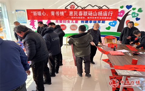 为传承中华民族传统文化,营造喜庆祥和的节日氛围,凝聚新阶层力量,日前,在安徽省宿州市委统战部新阶层科的带领下,宿州市新联会组织会员,赴砀山县砀城镇杨庙村开展“新暖心,青书情”惠民春联活动。