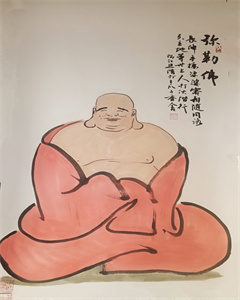 弥勒佛的形象在他的笔下也别具一格。佛像面容慈祥,佛光闪耀,给人一种宁静祥和的感觉。何江思通过绘画,传达出佛教的慈悲与宽容,让观者在尘世的喧嚣中寻得一片心灵的净土。
