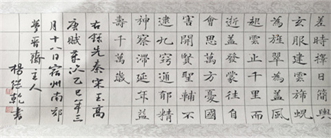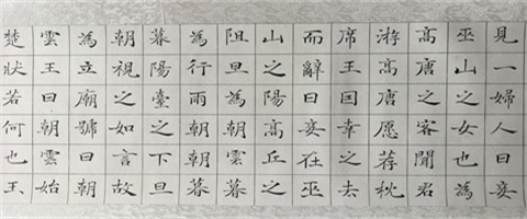 楷书以其规整、端庄的特点,与《高唐赋》所蕴含的庄重、典雅的文化气质相契合。通过书法的形式,将文学作品中的文字转化为视觉艺术,使两种不同的艺术形式相互交融、相互辉映。观者在欣赏书法作品的同时,也能重温《高唐赋》的文学魅力,感受到中国传统文化的博大精深。
