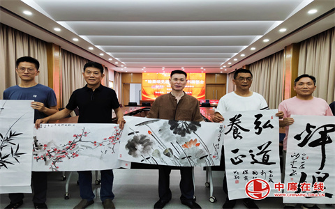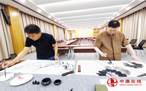 不一会儿,一幅幅佳作便跃然纸上。既有展现高洁品质的国画《荷风送香》,摇曳的荷叶、绽放的荷花栩栩如生,传递出清正廉洁的美好寓意;又有象征坚韧精神的《梅花绽放》,红梅傲骨,尽显蓬勃生机;更有翰逸神飞的书法作品,苍劲有力的字体,书写着对党和国家的深情祝福,每一笔都饱含着对党的热爱与赞美。