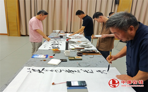 活动现场氛围热烈而浓厚,书画家们满怀激情,以笔为媒,以墨抒情。他们围绕歌颂祖国、歌颂党和人民等主题内容,挥毫泼墨,精心创作。创作现场,书画家们各展所长,或专注勾勒线条,或潇洒挥洒墨汁。