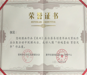 当“诗韵墨魂·剪影风华”的展陈灯光漫过宣纸,永安(张见)笔下的《夜雨》便有了穿透时空的重量。这幅入围宿州市文联和新华社安徽信息中心联办的画展佳作,不止是对白居易诗句的视觉转译,更是一场笔墨与灵魂的对话——画家以毫尖为凿,在墨色的流动中凿开了诗人心魂深处那方藏着湘灵的雨夜,让千年未散的思念有了可触的肌理。