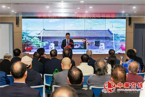 10月18日,家庭家教家风——山东兰陵褚氏文化书画展开幕式在枣庄市公共美术馆举行。枣庄市人大原副主任孙景瑞,枣庄学院原纪委书记、市关工委常务副主任高庆喜出席。兰陵褚氏书法家褚衍举、枣庄著名书画家刘志勇、兰陵褚氏家族理事会会长褚新先后发言,枣庄市人大原常委、财经委主任、二级巡视员褚志高主持活动。中华褚氏联谊总会、企业家联谊会、历史文化研究会会长,煌上煌集团党委书记褚建庚莅临展厅参观指导。