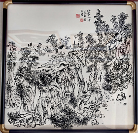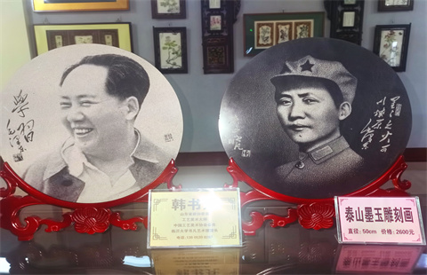 山东省政协委员、中国工艺美术家协会会员韩书凡先生捐赠了《泰山墨玉刻画》。