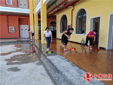 教师努力齐上阵。该园园长游红艳合理安排教职工,冲洗教室、打扫走廊、堆放器材、清理垃圾,大家冲的冲、扫的扫、推的推、抬的抬,汗水渗透了衣裳,手掌打起了血泡,但大家脸上仍然露出会心的微笑。