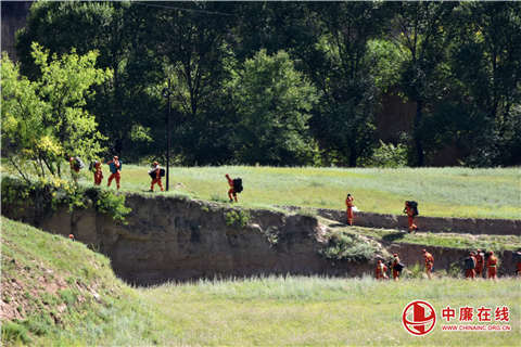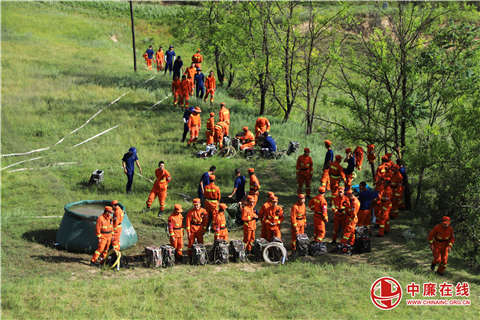甘肃省森林消防总队西峰大队在庆阳市王家湾水库,模拟实战开展特殊地形烟点处置考核。(刘凯)摄