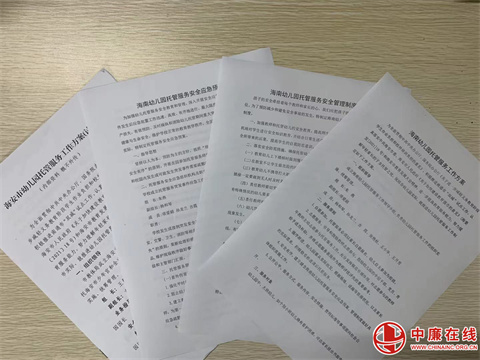 为确保托管服务工作安全有序,幼儿园根据《海安市幼儿园托管服务工作方案》的精神,制订了《海南幼儿园托管服务工作实施方案》《海南幼儿园托管服务安全应急预案》《海南幼儿园托管服务管理制度》。在园长的带领下,各部门负责人首先对方案、制度进行了审议,随后,组织全体教职工一起学习,为切实做好托管服务工作提供了有力的保障。