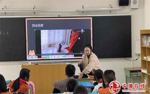 陈婷老师执教劳动《折叠上衣》,课上陈老师以视频和自行示范上衣的折叠方法,手把手教学生如何将上衣折叠整齐,让学生在轻松的氛围下学会一项生活劳动技能。
