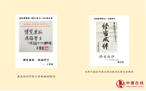 “院长荐文”是寰宇住宿书院充分发挥自身优势精心打造的特色学生工作品牌,该院院长、郑州市高层次人才、文科二级教授、拥有“国务院特殊津贴”“中国好人”“全国最美家庭”三项国字号荣誉的杨家卿教授为该成果的负责人。自2018年11月杨院长在书院微信公众号开设“院长荐文”。专栏一开设便受到了广大师生读者的热烈追捧,至今篇数已逾皕期,篇篇锦绣,字字珠玑,已然成为启迪一届届寰宇人的璀璨星河。在皕期纪念之时,书院亦将皕期院长荐文(60余万字)编辑成册,引来当代著名学者、国务院参事、三联书店总经理、北京大学资深教授、中共中央党校、求是杂志社、光明日报社、武汉大学、南开大学、中山大学、河南日报社、河南省社科院及国内外50余名知名专家学者纷纷题词祝贺。该项目荟萃百家,以先进文化浸润学生心灵,培育学生创新理念,彰显文化育人特色,为培养新时代有思想、有本领、有担当的优秀人才做出了积极贡献。