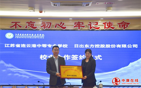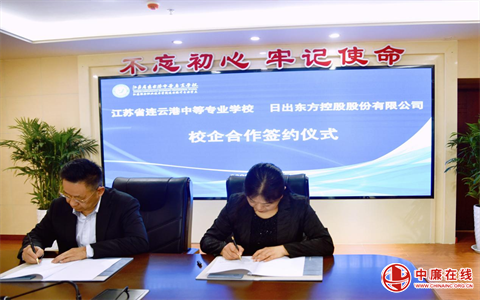 为加强校企合作力度,实现校企优势互补、资源共享,进一步拓宽学生实习就业渠道,建设“双师型”教师企业培训基地,4月20日上午,江苏省连云港中等专业学校与日出东方控股股份有限公司在学校图文信息楼会议室成功举行校企合作签约仪式。日出东方控股股份有限公司党委书记、总裁万旭昶,党委副书记、副总裁、光伏公司总裁朱亚林,储能公司总裁高峰,空气能连云港基地总经理尹亚领,行政人力总监刘冰,人力资源部部长张译之,人力资源部主管周国全,连云港中等专业学校党委书记、校长李小蔚,副校长丁阳出席仪式,学校各部门院系主要负责人参加。