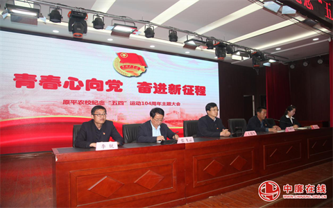 为深入学习贯彻习近平新时代中国特色社会主义思想,增强党的二十大精神的感召力和凝聚力。5月4日,山西省忻州市原平农业学校“青春心向党、奋进新征程”纪念“五四”运动104周年大会在原农培训中心隆重举行。原平农校校党委书记王瑞军、党委委员、副校长刘建平、党委委员、副校长张飞云、团委书记张晓燕、学生处副主任李锐出席大会,全校学生参加大会。