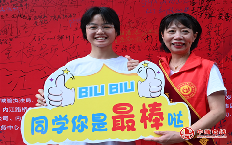 当日,2023年全国高考正式拉开大幕。在内江市第六中学考点外,志愿者布置了各种温馨而励志的标语,为即将进入考场的考生们加油鼓劲。(兰自涛)