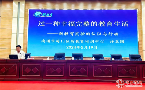 原江苏省南通市海门区新教育培训中心研究科科长,海门区功勋校长,新教育研究中心副主任许卫国,以《过一种幸福完整的教育生活一一新教育实验的认识与行动》为题作了专题讲座,许卫国主任结合新教育实验的理念和实际操作,阐述了如何通过具体实践为学生创造幸福而完整的教育生活,并对新教育实验的背景、发展、教育理念、内涵和特点、以及创始人朱永新的品质、影响和贡献进行了详细解读。此外,他还介绍了新教育实验的三个发展阶段:启动实验期、理论构建期和深化推进期,以及实验的教育理念和发展目标。最后,许卫国主任对新教育实验的未来充满信心,并期望它未来能发挥更大的影响力,助力我国教育事业的发展。