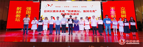 为认真学习贯彻习近平总书记关于“三个牢固树立”“四个引路人”的重要指示精神,紧扣立德树人根本任务,坚守为党育人,为国育才的初心使命,树立“躬耕教坛、强国有我”的志向与抱负,切实履行“教书育人、管理育人、服务育人”的神圣职责,鼓励全区广大教职工在各自岗位上勤奋劳动、诚实劳动、创新劳动,用个体的“劳动美”汇聚实现“中国梦”的教育力量,江西省上饶市信州区教体局、区总工会于2024年5月28日开展全区教体系统“躬耕教坛,强国有我”师德师风演讲活动,区总工会党组副书记、常务副主席冯秀云、区教体局党组成员副局长余其中、区教体局党组成员副局长余凌红出席并为获奖者颁发证书。