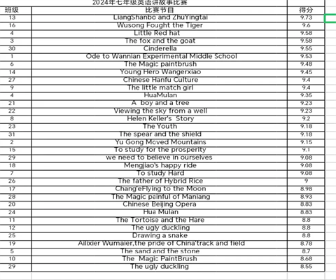 为促进学生们赏析英语的语言魅力,感受课本中“生活的语言”,体验语言材料的丰富情感,为进一步提高学生语言运用能力,锻炼学生的逻辑思维和公众演讲能力,江西省上饶市万年县实验中学于2024年6月14日下午举办了“七年级英语讲故事比赛”。