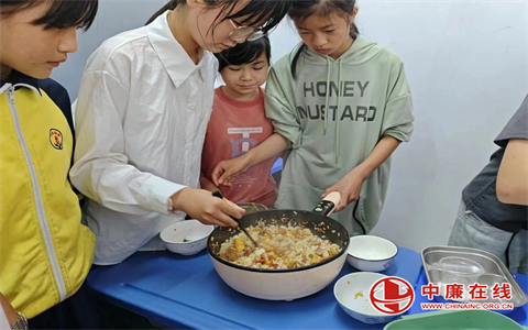 与此同时,五年级的同学们准备了鸡蛋和米饭,通过熟练的颠炒技巧,制作出粒粒分明、颗颗饱满、香气扑鼻的蛋炒饭。