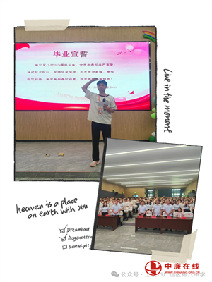 须知少日拏云志,曾许人间第一流。九年级毕业生代表郑世宇同学在典礼上真诚地感谢母校的殷勤培育,感谢老师们的谆谆教诲。他表示在八中收获的这些珍贵的师生情谊和同学情谊,都将成为他逐梦征程中强大的精神动力,助他飞向更广阔的天空!