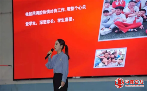 冰溪小学张艳老师,分享了席剑老师在三尺讲台上辛勤付出续写教育情怀,在公益活动中发挥余热传递生命温暖。他以一腔孤勇,囿于三尺讲台,两袖清风、育才四方,如同一束光,照亮我们前行的路。