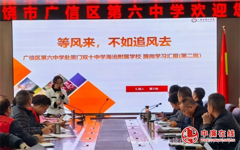等风来,不如追风去,本着“学习、分享、交流、成长”的理念,为进一步发挥厦门海沧跟岗学习(第二批)教师的辐射作用,达到共同学习的目的,12月2日,江西省上饶市广信区第六中学组织了外出学习系列汇报活动。学习归来的老师们将自己本次外出学习的所见、所思、所悟、所得在分享报告会上进行了精彩的汇报。