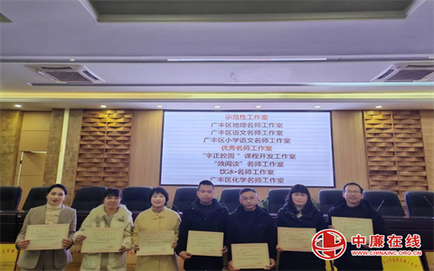 为交流名师工作室经验,展示名师工作室成果,推动名师工作室建设,1月7日上午,江西省上饶市广丰区第二届优秀名师工作室展示暨名师工作室授牌活动在区教体局一楼会议室举行。区教学研究中心全体教研员、全区45个名师工作室的主持人、公办学校教务处主任、科研处主任、骨干教师、民办学校教务处主任近300余人参加了本次活动。活动由区教学研究中心教研员叶洪峰主持。