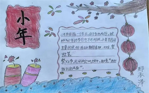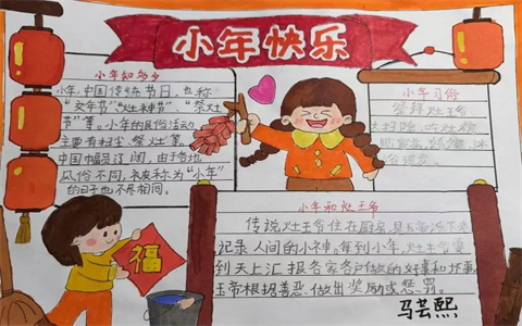 学生用手中的画笔绘出一幅幅小年手抄报,将小年的来历、习俗勾勒于纸上,也将我们的传统文化跃然在心里。