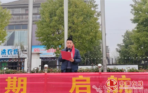 综治主任陈雄飞宣读县运动会获奖学生名单。