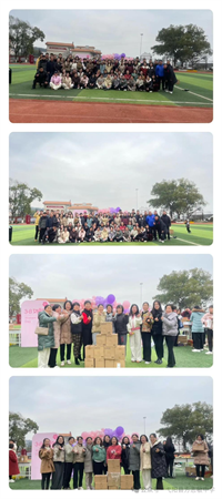 3月9日上午,由校工会组织全体女教职工和部分男教师在操场举办“三八”妇女节庆祝活动。场地布置得格外温馨,桌椅整齐地摆放着各种礼物和装饰品,拱门形的气球装饰点缀其中,为节日增添了浓烈的喜庆氛围。蓝天白云下的国旗和雕像显得格外醒目,整个场景洋溢着欢快、庄重的气息,准备迎接每一位参与者。