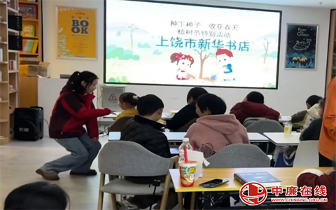 三月信江水暖,春意漫卷书页,江西省上饶市新华书店“我植树我快乐,一起趣植树”植树节主题教育活动在书香中温情启幕。虽无铁锹与泥土的实景交融,但一方屏幕、一页PPT、一场生动的知识盛宴,却让饶城读者共赴绿色之约。读者们托腮聆听树木的呼吸,执笔记录生态的密码,这场别具匠心的“云端植绿”,让环保理念如信江清流,浸润心田。