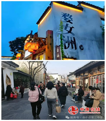 下午2:30,抵达婺女洲生态园区。教职工们漫步在青石板铺就的街道上,呼吸着清新的空气,欣赏着沿途的徽派建筑。