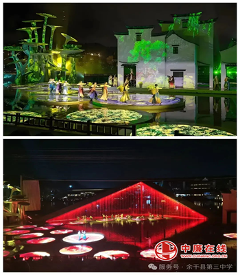 夜游园区,感受文化。晚上6:40,大家一起在婺女洲度假区内观看《遇见•婺源》光影表演。这场以婺源文化为核心结合现代光影科技打造的夜游演出,给老师们带来了一场视听盛宴。