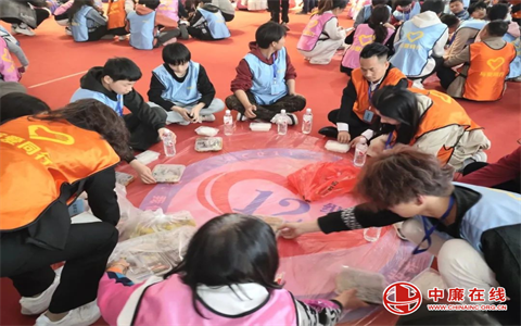 围坐在红色心形图案前的志愿者们正忙碌地分发食物,他们的动作熟练而有序,每一份努力都凝聚成改变他人生活的希望。心形标志象征着团结一心,每个人都在用自己的方式传递爱与温暖。
