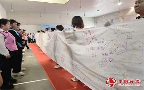 白色横幅上布满手印与签名,这是家长与孩子们真情流露的见证。