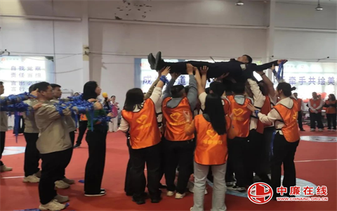 手臂高举着校党支部书记黄庆君的志愿者们用行动诠释了团队精神的意义。背景墙上的“阳光心态”“乐观向上”等字样进一步强调了健康生活的重要性,整个画面充满了正能量与目标感。