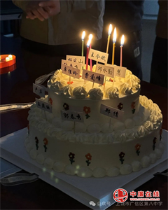 生日当然离不开美味的生日蛋糕。精美的蛋糕上插着每位寿星的名字竖排,微弱的烛光在摇曳,寓意着每一个人的梦想与希望。