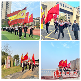 活动伊始,全体参与活动的师生整齐列队,庄严肃立。当雄壮的出旗曲响起,护旗手擎起党旗、团旗和校旗,迈着铿锵有力的步伐,昂首阔步,整齐地走上台阶,这一刻,全体师生目光坚定地注视着前方,每个人的心中都充满了对祖国的热爱。