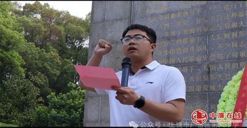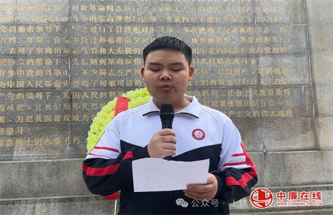 团员代表何嘉涵表示:我们要继承先烈遗志,从革命烈士身上汲取伟大的精神力量,把革命烈士不怕困难、不畏艰险、英勇献身的精神,转化为锐意进取、认真学习的实际行动,争做新时代好少年,努力成为社会有用之才,振兴中华,再创辉煌!
