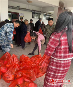 在活动中,上饶市安防工程学校的学生陪他们聊天,帮他们捶捶背,给他们端茶倒水,给他们送去水果和牛奶,牵着他们散步。汤主任领着教师,在给爷爷奶奶分发食物……