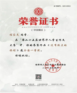 世界华人学生作文大赛作为一项极具影响力的文化赛事,旨在弘扬中华文化,提高中文写作水平,加强海内外学生文化交流,展示华人学生的精神面貌和中文素养。本次广丰区参赛学生以独特视角、细腻笔触,展现了扎实的写作功底与非凡的文学素养,在众多作品中崭露头角,充分彰显了我区在写作教学领域的卓越成果。获奖教师们凭借丰富教学经验和倾囊相授,为学生的创作之路提供了有力支持。