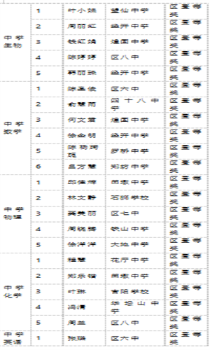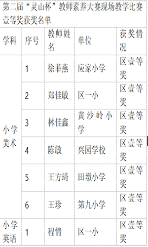 全区第二届“灵山杯”中小学教师教学素养大赛各学科一等奖获奖教师名单