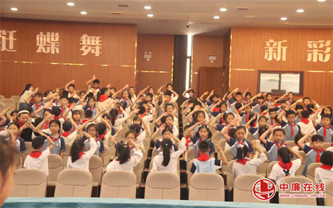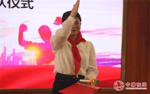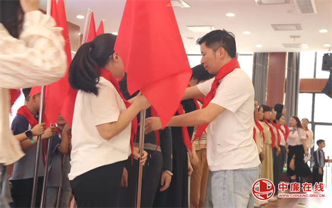 明亮的灯光温柔地洒在崭新的红领巾上,一张张纯真脸庞,目光灼灼,藏满憧憬与期待。少年先锋队队旗在会场中央缓缓而出在肃穆的气氛中庄严飘扬。当雄壮激越的队歌旋律响起,小小身影们挺起胸膛,稚嫩的歌声在会场内回荡,为这个特别的下午增添了无限朝气——这是童年朝向未来的第一次深情致敬。