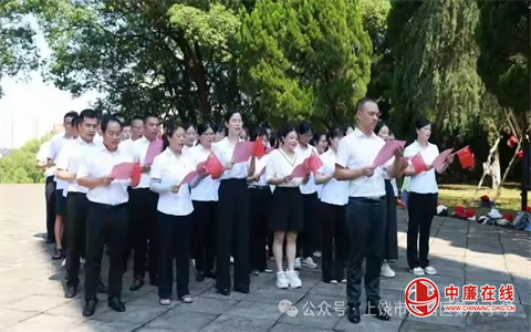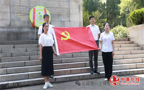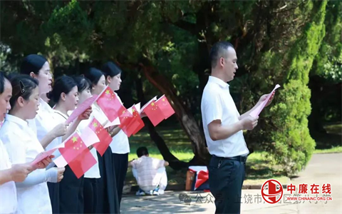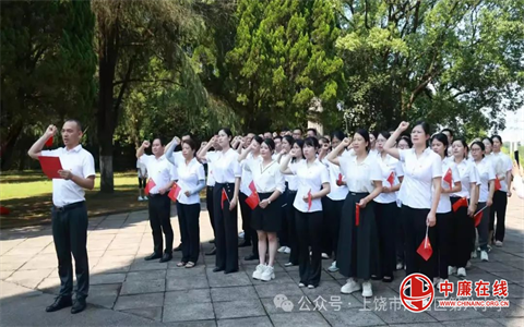 晨光穿透松林,烈士纪念碑汉白玉的冷峻与党旗的炽烈在此交融:“我志愿加入中国共产党,拥护党的纲领……”党总支书记苏友辉带领党员教师重温入党誓词,声声誓言如信江怒涛撕裂寂静。这声宣告,比任何教案都更直抵心灵——它让我们铭记粉笔亦是钢枪。